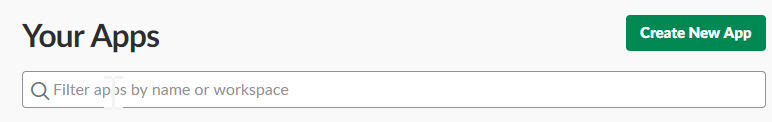 The final step is to make the bot available in Slack. Let’s go over to the Slack apps page https://api.slack.com/apps. On this page, there is a big green button that says “Create New App”.